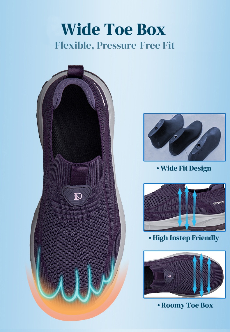 Designed with a roomy toe box, ideal for wide feet, high instep, flat feet, bunions, or plantar fasciitis—no squeezing, just pure comfort.