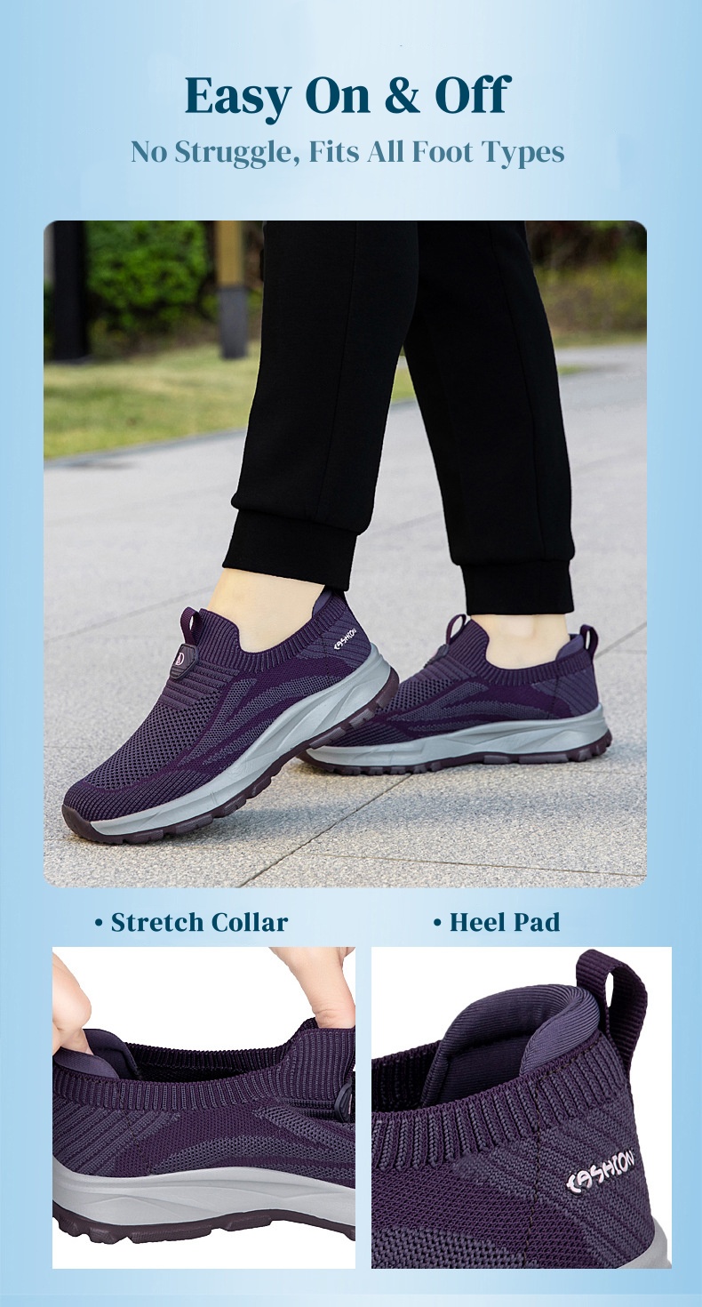 Stretch collar and cushioned heel make slipping on and off a breeze, offering a snug fit for wide, chubby, or flat feet—no hassle, no discomfort.
